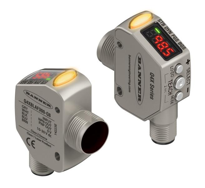 Q4X是美國(guó)邦納最新一代的多功能全金屬數(shù)顯激光測(cè)距傳感器。為各種困難的工業(yè)應(yīng)用提供高速,非接觸,可靠地檢測(cè)解決方案。Q4X同時(shí)提供了FGS前景抑制和BGS背景抑制功能。 它是名副其實(shí)的傳感器界的“鋼鐵俠”,達(dá)到IP69K防護(hù)等級(jí)的堅(jiān)固外殼, FDA級(jí)不銹鋼可抵抗機(jī)械沖擊、過度緊縮和極端振動(dòng);它還非常的多才多藝,在23-300毫米檢測(cè)距離內(nèi),能可靠檢測(cè)各種目標(biāo)顏色和材質(zhì)表面;而且它平易近人,傾斜的4位數(shù)字顯示、響應(yīng)快速清晰的按鈕都簡(jiǎn)化了用戶體驗(yàn)。